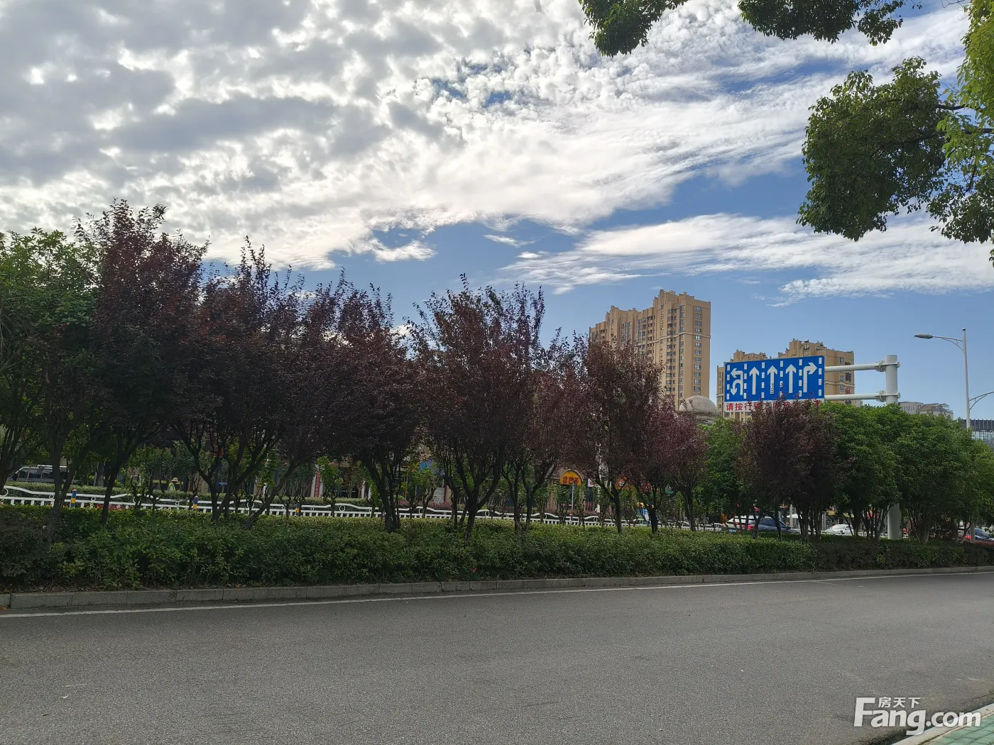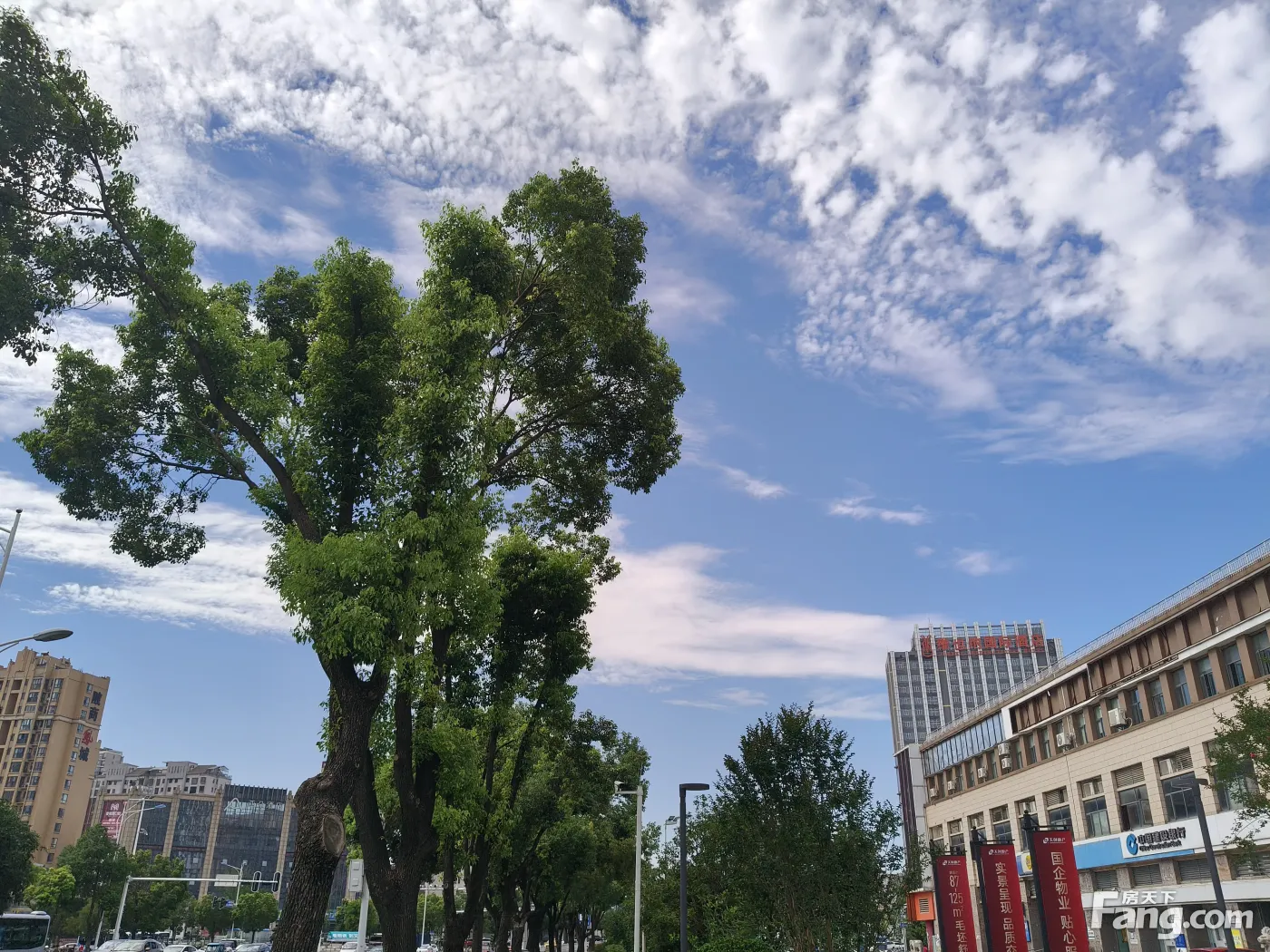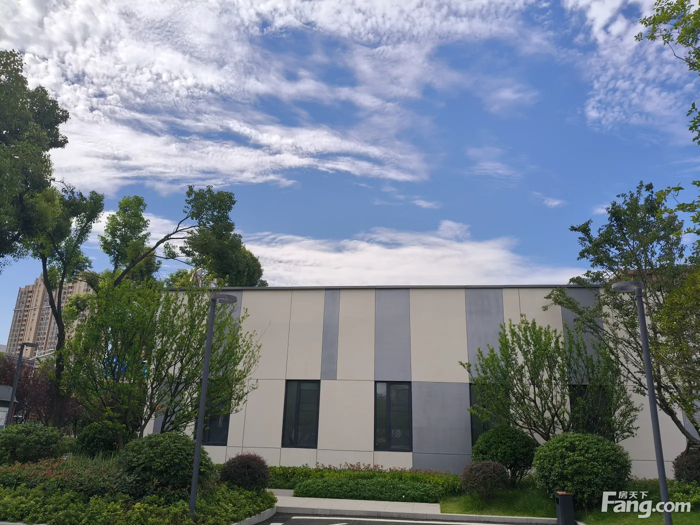 今日晴空万里,蓝天白云,售楼部周边拍摄