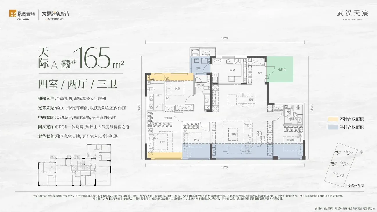 166平:四房,2梯2户,得房率97%