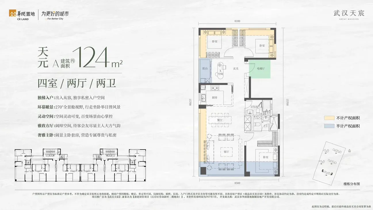 项目总建筑面积6.85万平方米,容积率2.5,主要建设3栋高层住宅➕2栋小高层住宅➕1栋幼儿园及沿街底商等,户型面积124-143-166平,共484套房源,全部精装修交付。