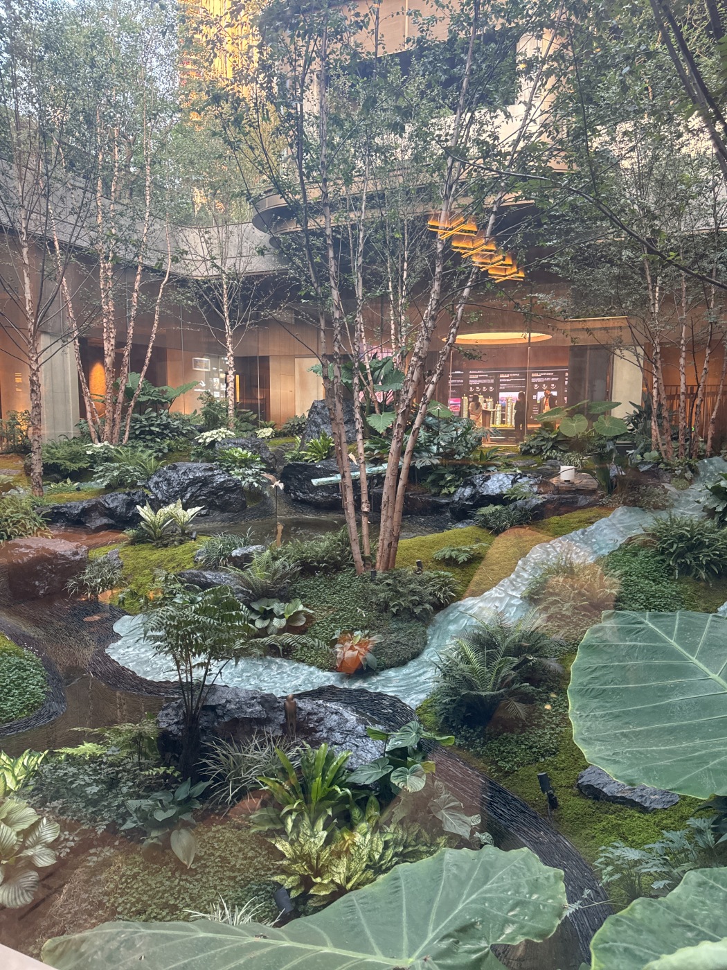 155㎡样板间外的庭院让我彻底破防:整块天然原石打造的流水景墙,在阳光下泛着粼粼波光。设计师说每块景观石都经过72小时筛选,连纹路走向都要和建筑线条呼应。更绝的是30%绿化率里藏着20多种珍稀植物,春天樱花雨,秋天红枫道,四季都有风景可拍。