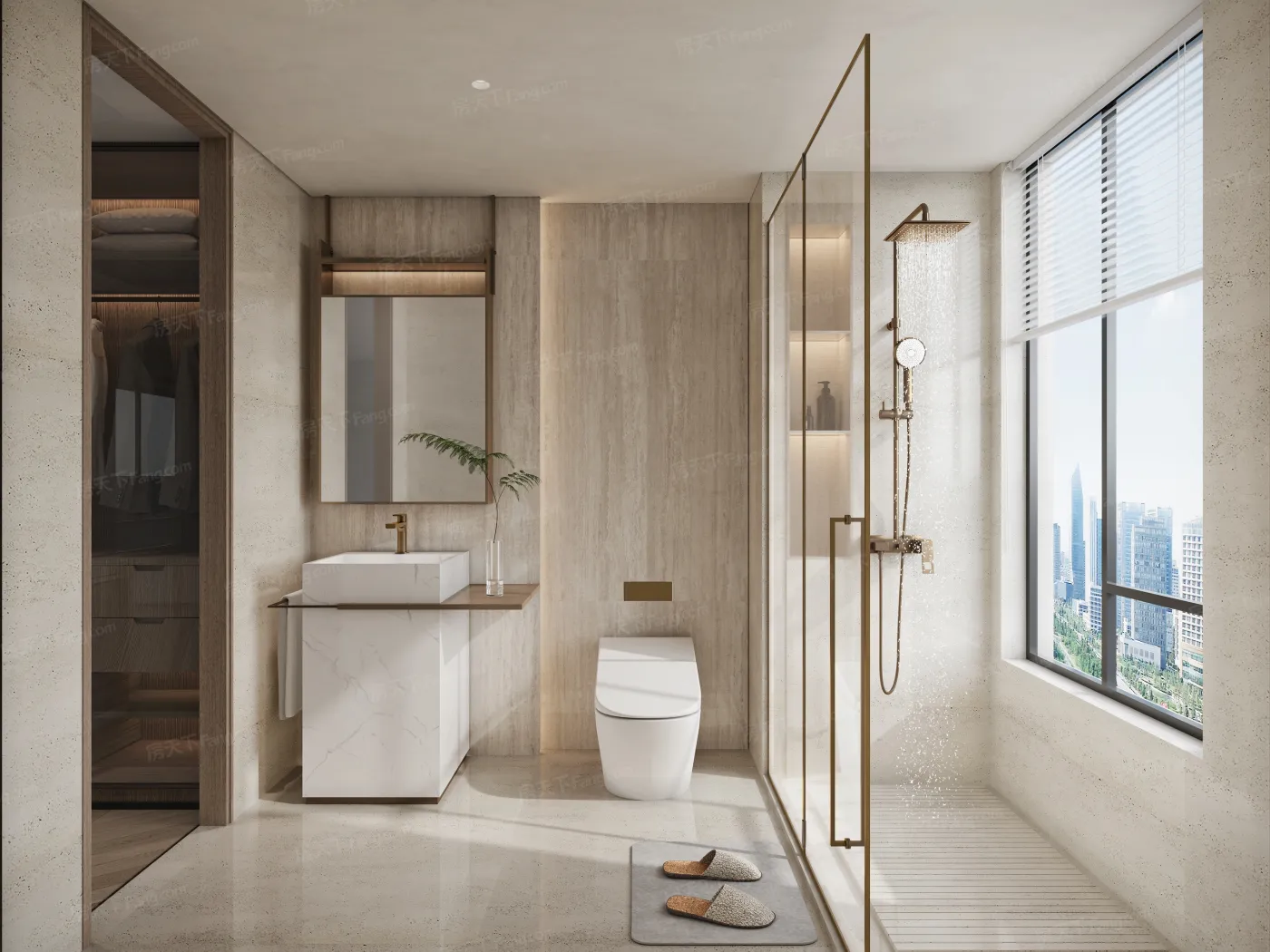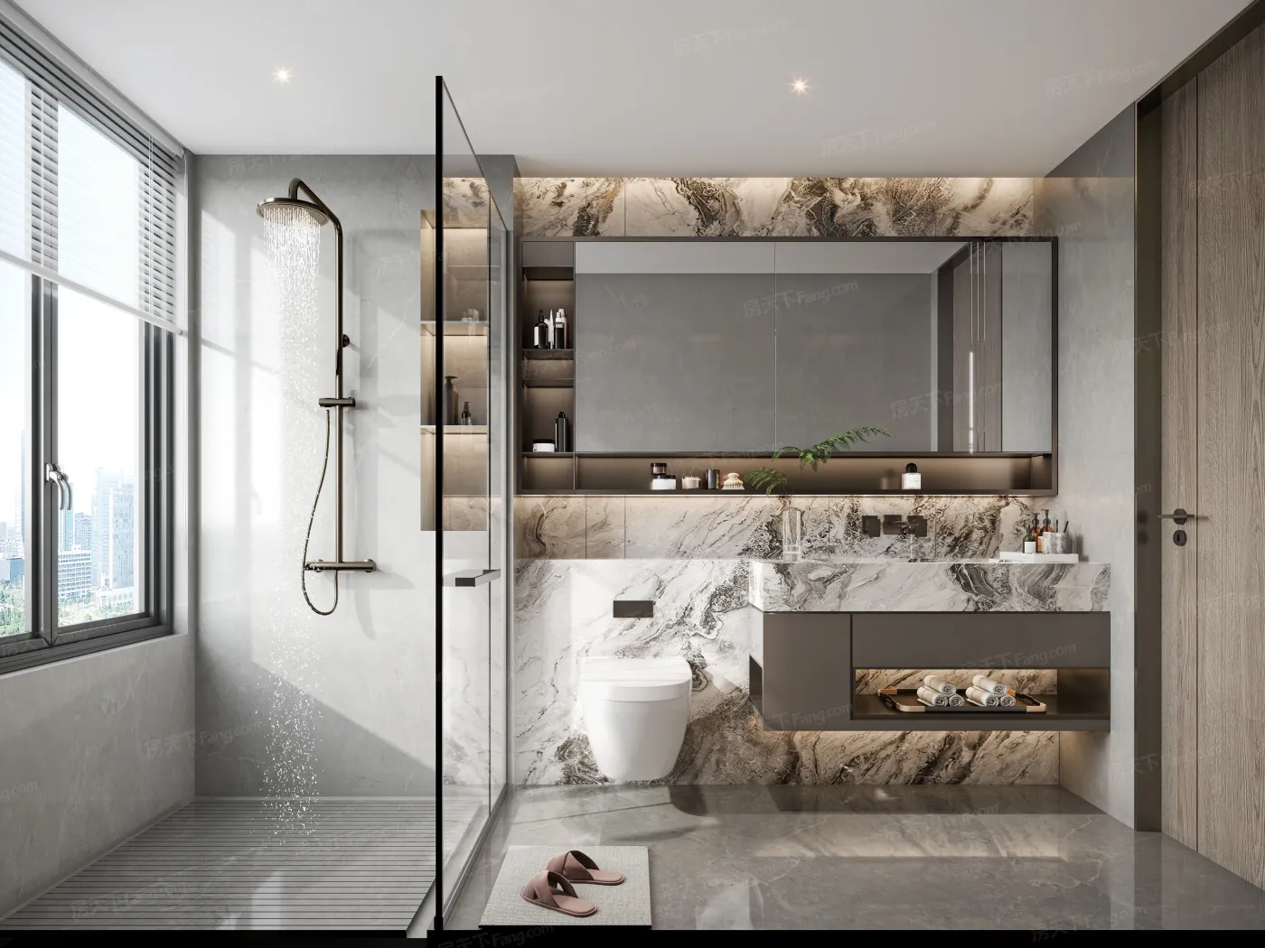 2️⃣ 125㎡主卫预留了双台盆位置,二胎家庭都够用