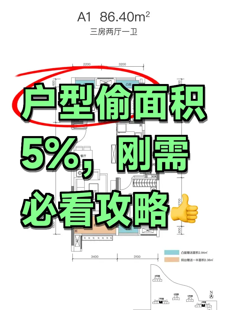 1️⃣ 户型心机:83㎡做三房还带飘窗,实测得房率比竞品高5%,这波偷面积操作666