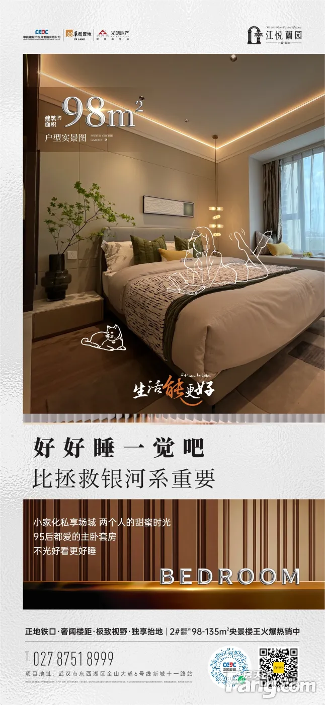 主卧套房,随时躺平 不光好看更好睡 武汉江悦蘭园 约98-135㎡央景楼王限藏