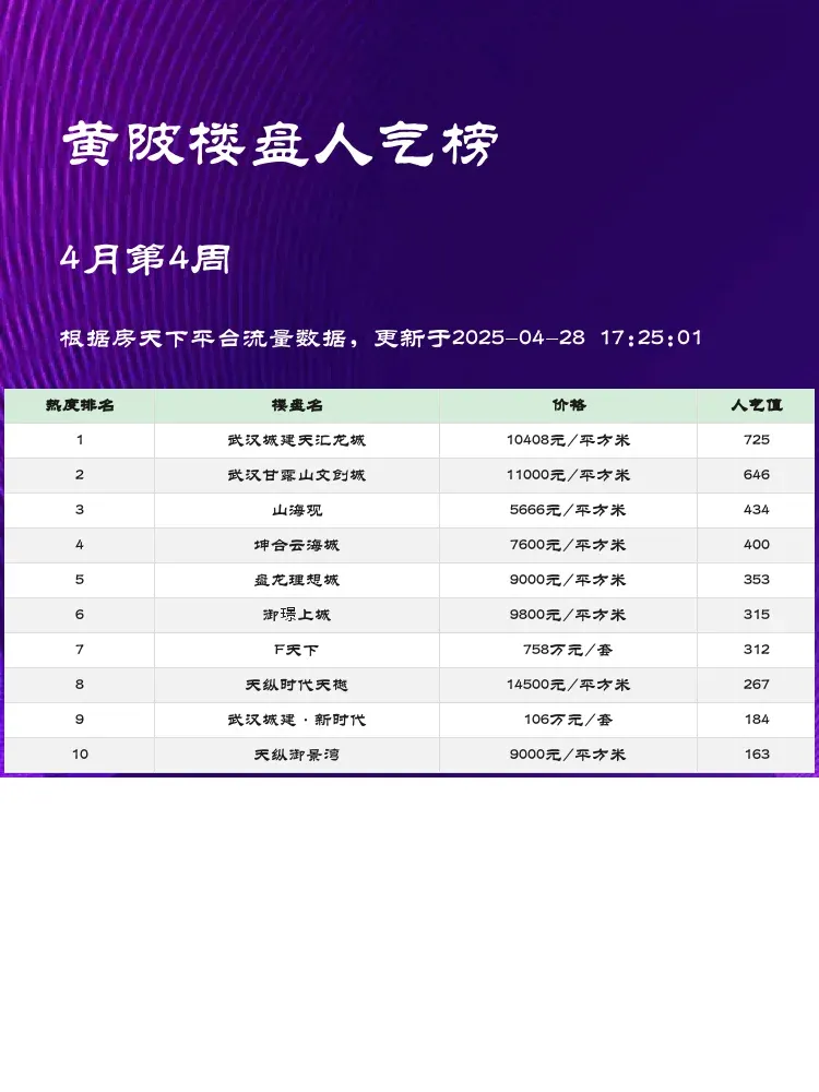 买房选房看榜单!人气楼盘榜单能直观反映市场热度,帮你避开冷门盘💡当前市场下,性价比+配套+交通是购房三大核心要素,这份黄陂区最新榜单给你最实用的参考~