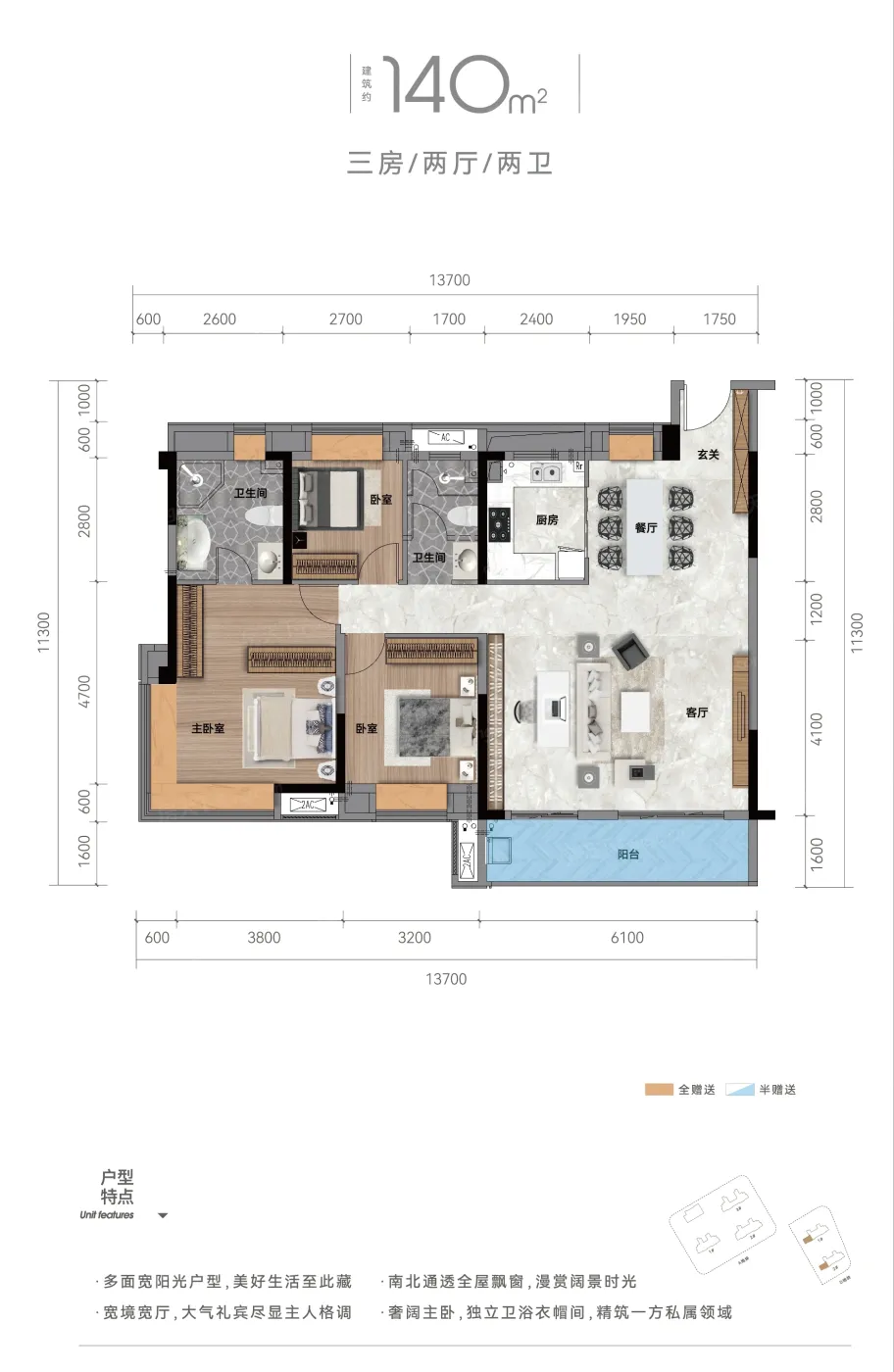 3. 产品设计更务实:79㎡三房、140㎡四房,精准匹配二胎家庭需求