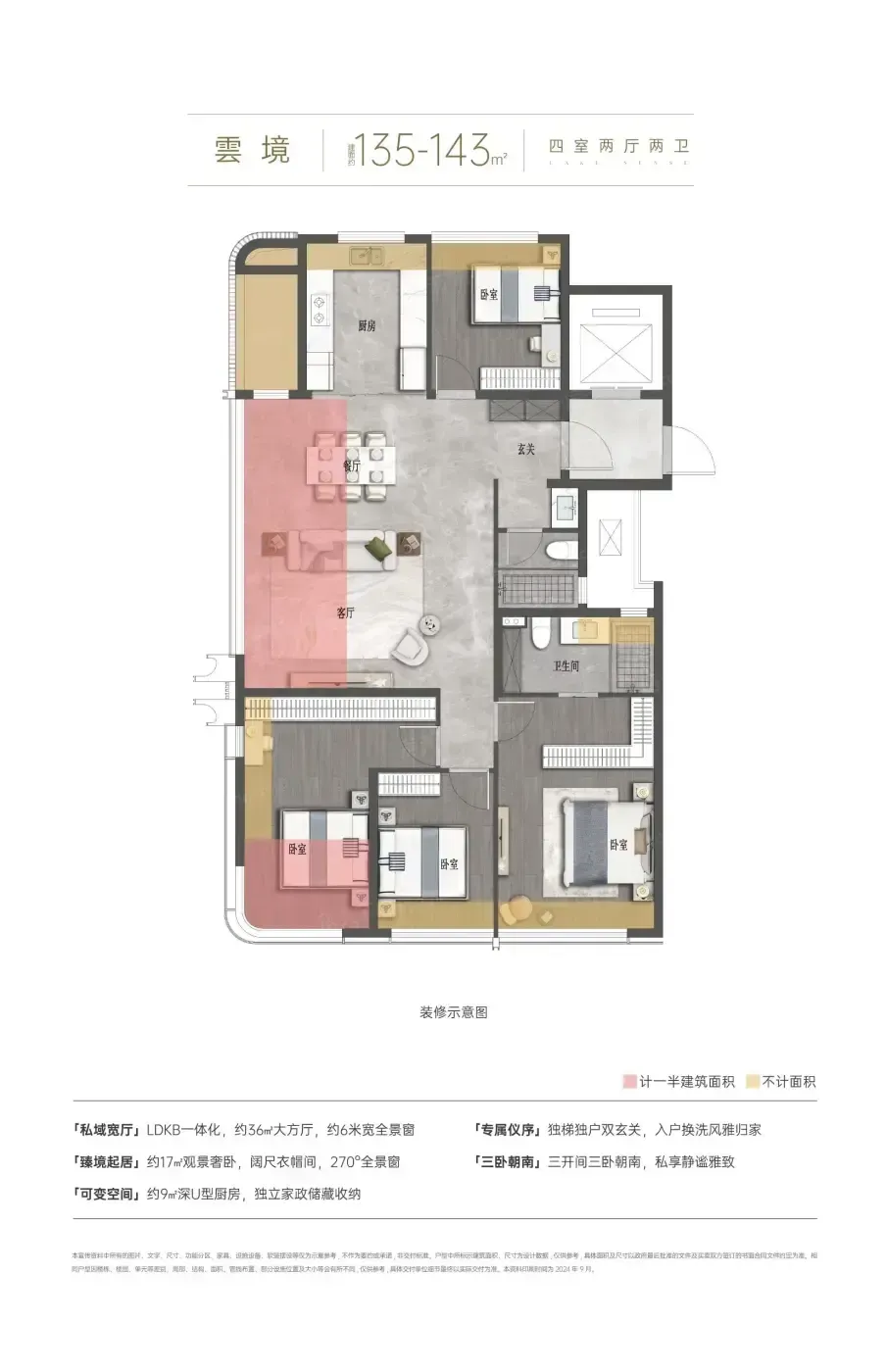 以145㎡户型为例,93%得房率实得134.85㎡,对比常规83%户型多出14.5㎡。按区域3万/㎡折算,相当于省下43.5万!更绝的是采用转角无柱设计,270°环幕窗直接把南湖框成客厅装饰画