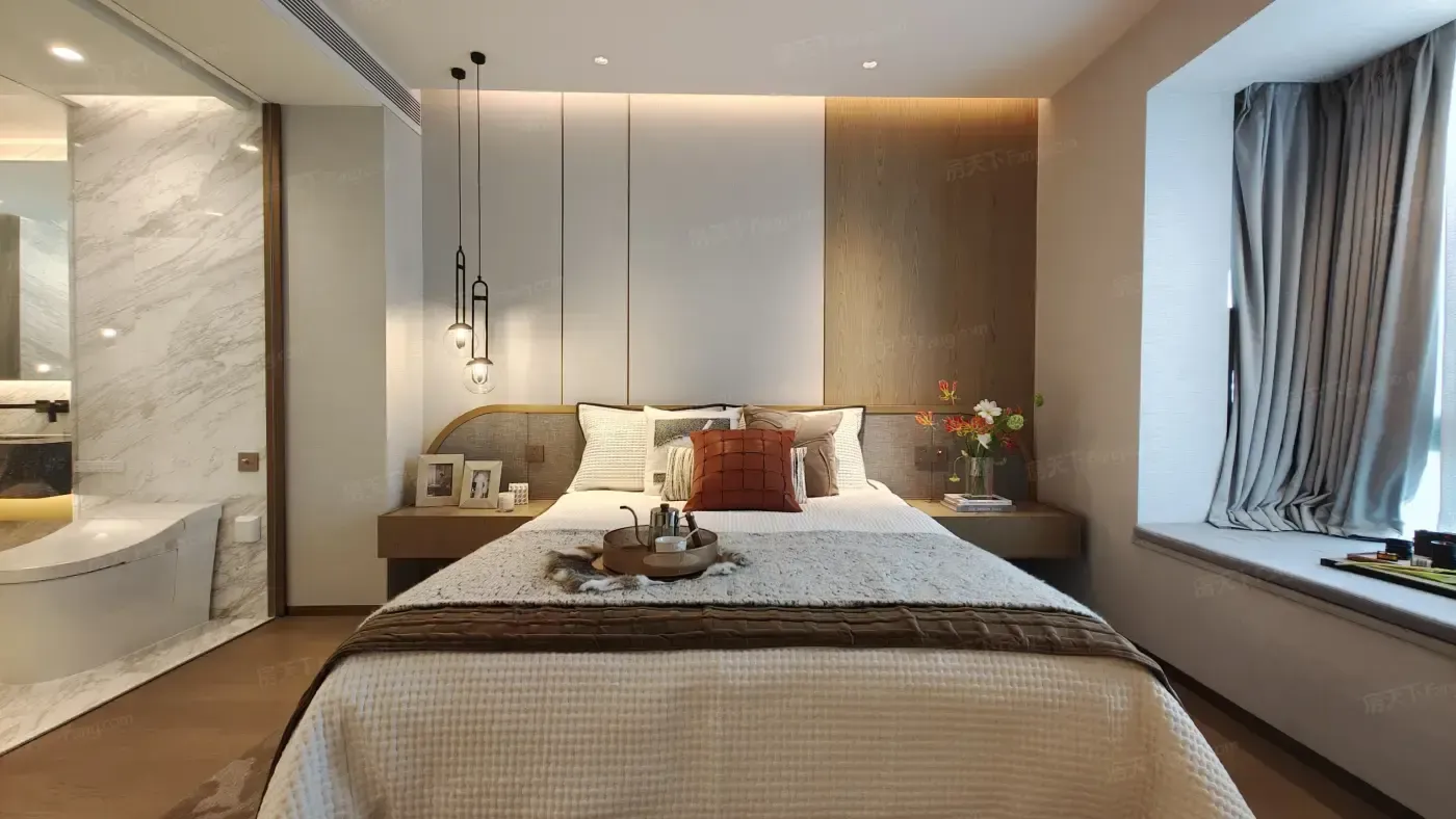 122㎡三房做到双套房配置,飘窗全数保留改造空间。厨房预装凉霸和洗碗机,玄关柜带旋转鞋架——这些细节在汉口核心区竞品里都是加分项。下楼步行5分钟就是六渡桥菜场,对比后湖某3.3万/平还要开车买菜的改善盘,真实烟火气更动人。
