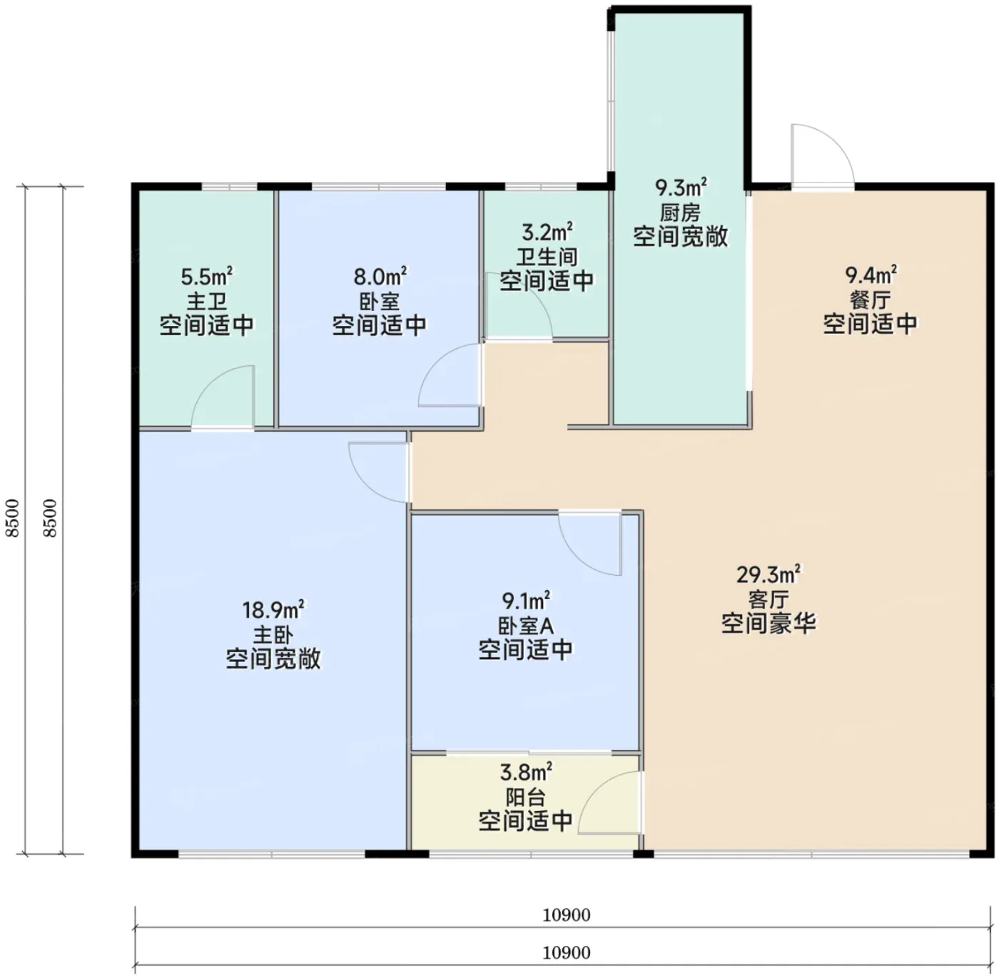 新生代家庭注意看三点:①U型厨房塞得下双开门冰箱,边做饭边看娃动线才合理;②主卧L型飘窗能改咖啡角+书桌,比常规户型多出3㎡功能空间;③动静分区把老人房和儿童房隔开,深夜加班不怕吵醒家人。