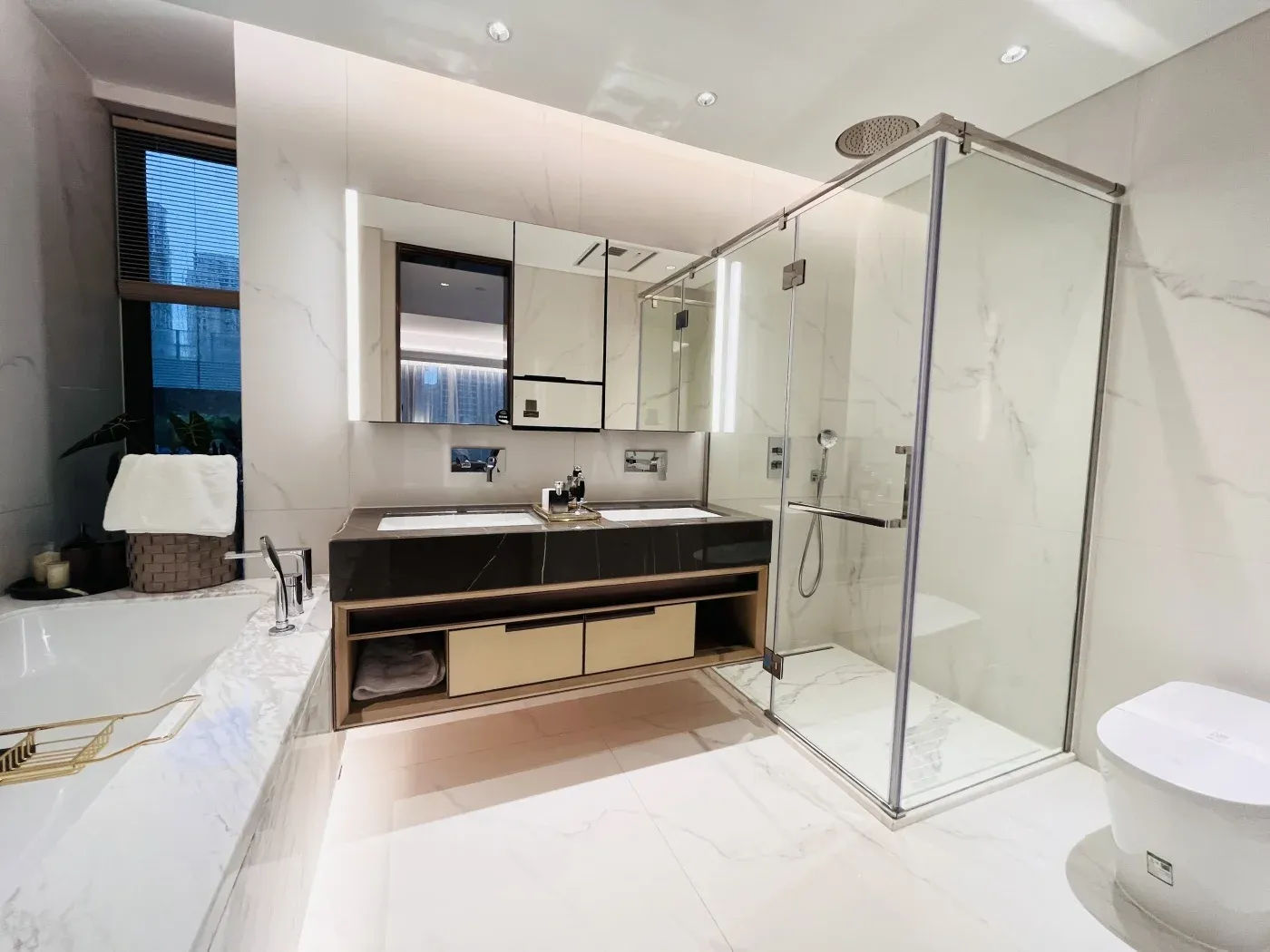 全屋low-e玻璃幕墙+智能调光系统,实测既能180°瞰江又不担心走光。对比某些用窗帘封印景观的伪江景房,这种「看得见风景的隐私」才是真·科技住宅的降维打击。