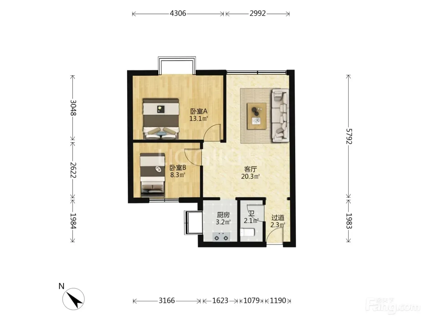 ✅62平两房一厅,98年建但保养好