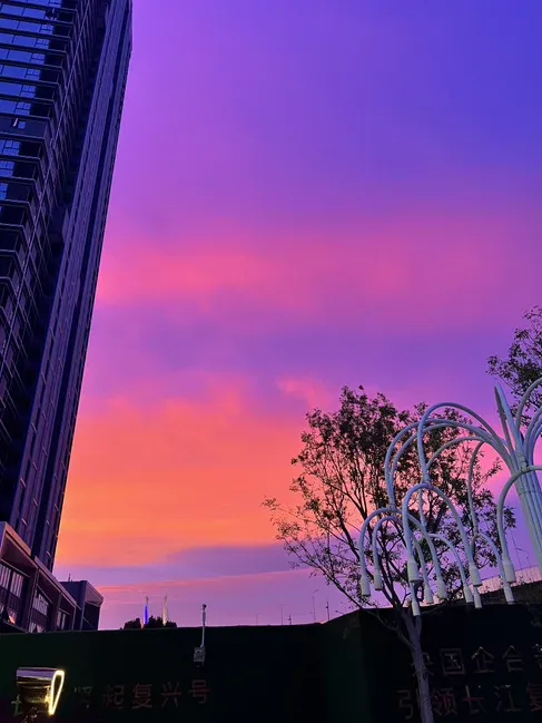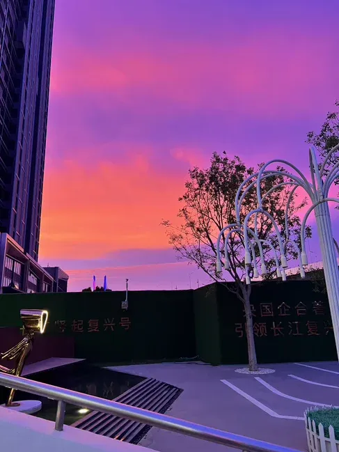 国樾滨江看到的火烧云是紫色的