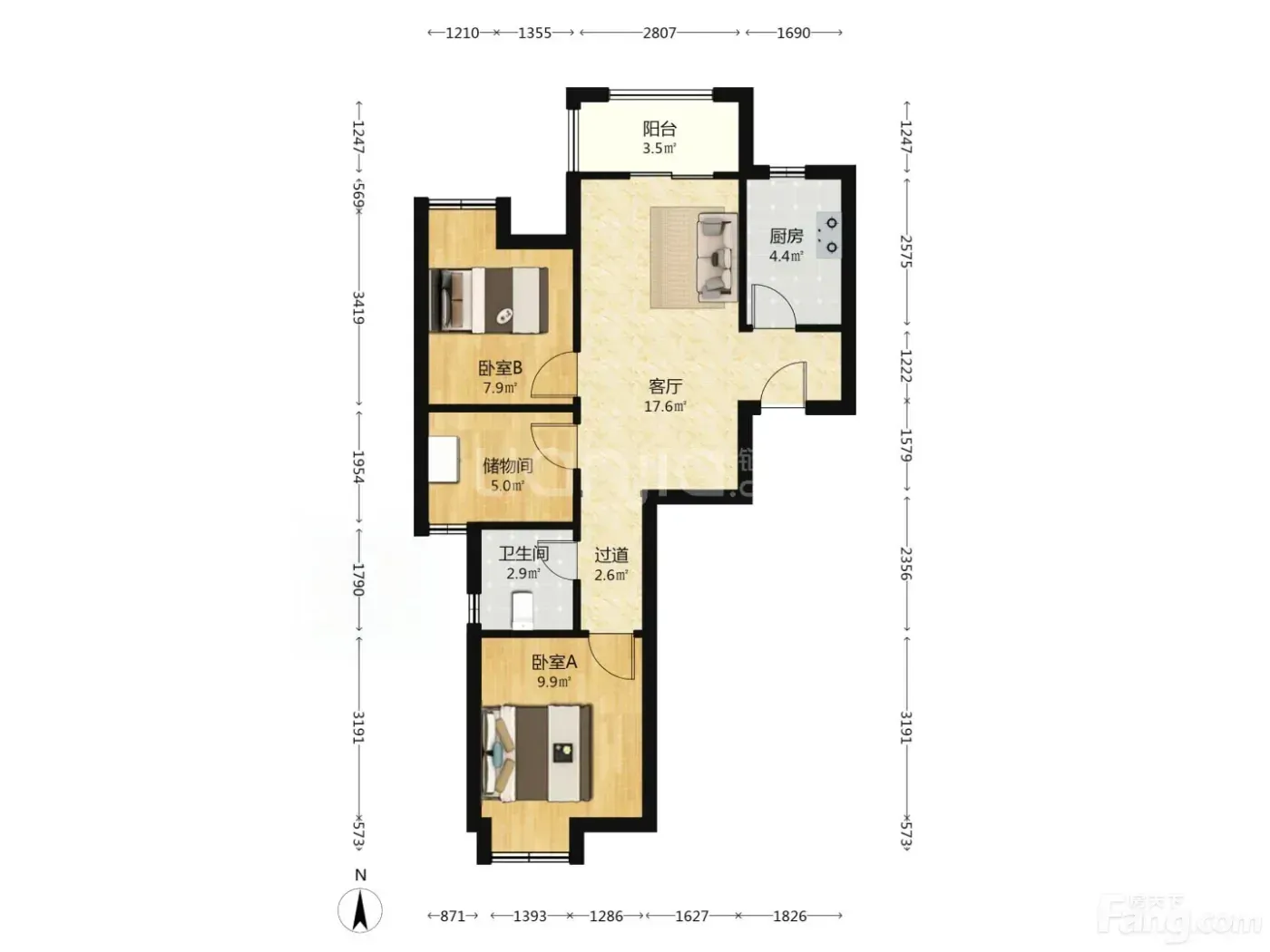 ✅ 3室2厅格局超实用!自己打掉了半墙做开放式厨房,空间显大又明亮💡
