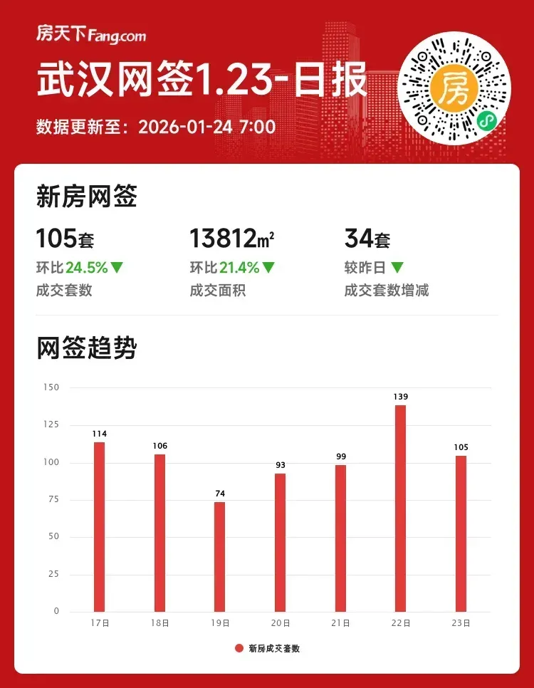 成交套数:105套 ↓24.5%(较昨日减34套)