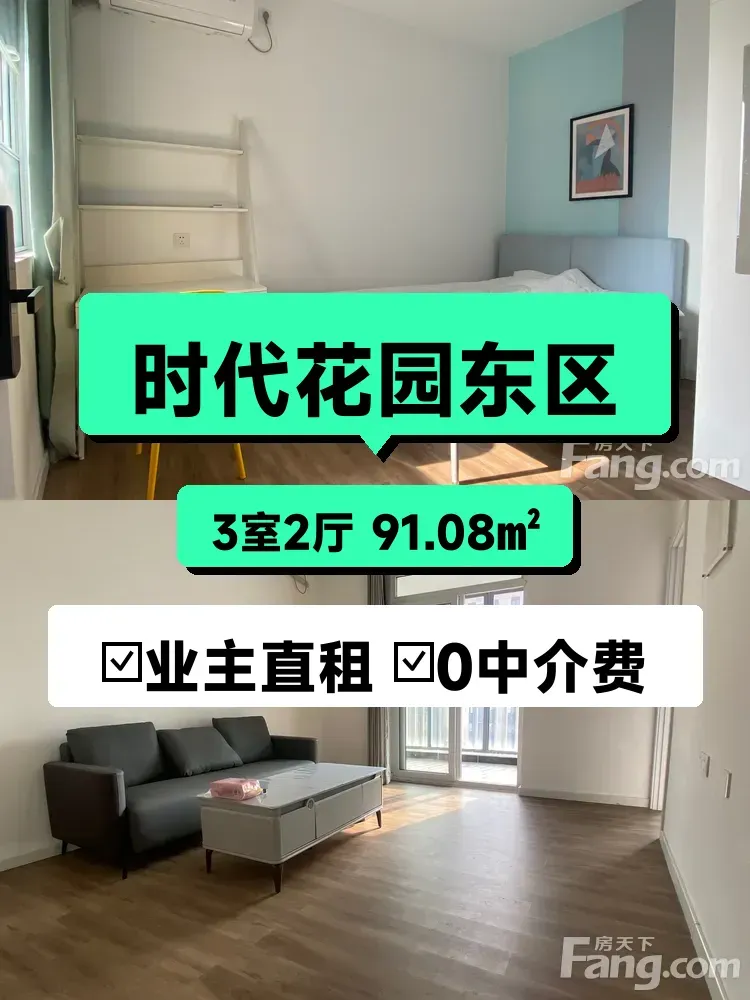 标题:自家南向三房出租🌞|时代花园东区电梯房|3750/月