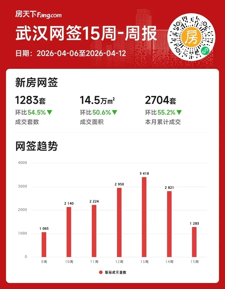 各位武汉的房产关注者们,大家好!🚀 作为资深房产分析师,我来带大家快速浏览2026年第15周(4月6日至4月12日)武汉新房市场的最新动态。整体感受:市场进入短期盘整期,新房成交1283套,数据背后隐藏着哪些机会?一起来探索吧!