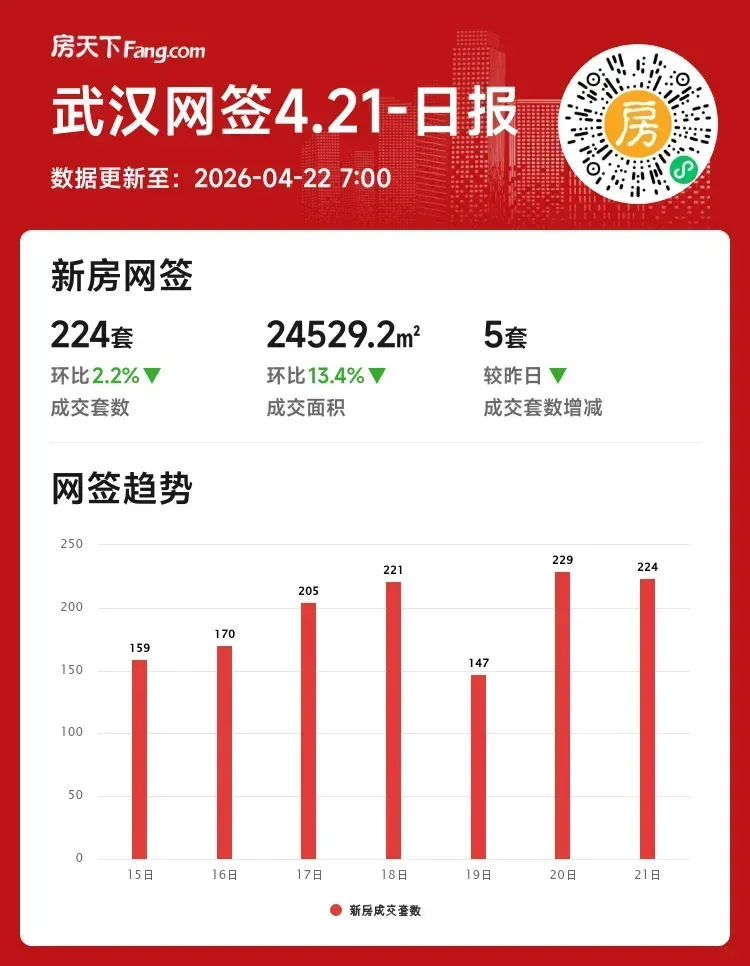 成交套数:224套 ↓2.2%(较昨日减5套)