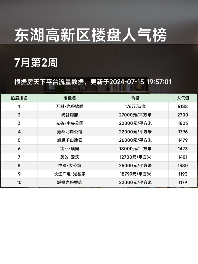 📊 东湖高新区人气楼盘榜单前3名的楼盘已经出炉,快来看看哪些楼盘最受欢迎吧!