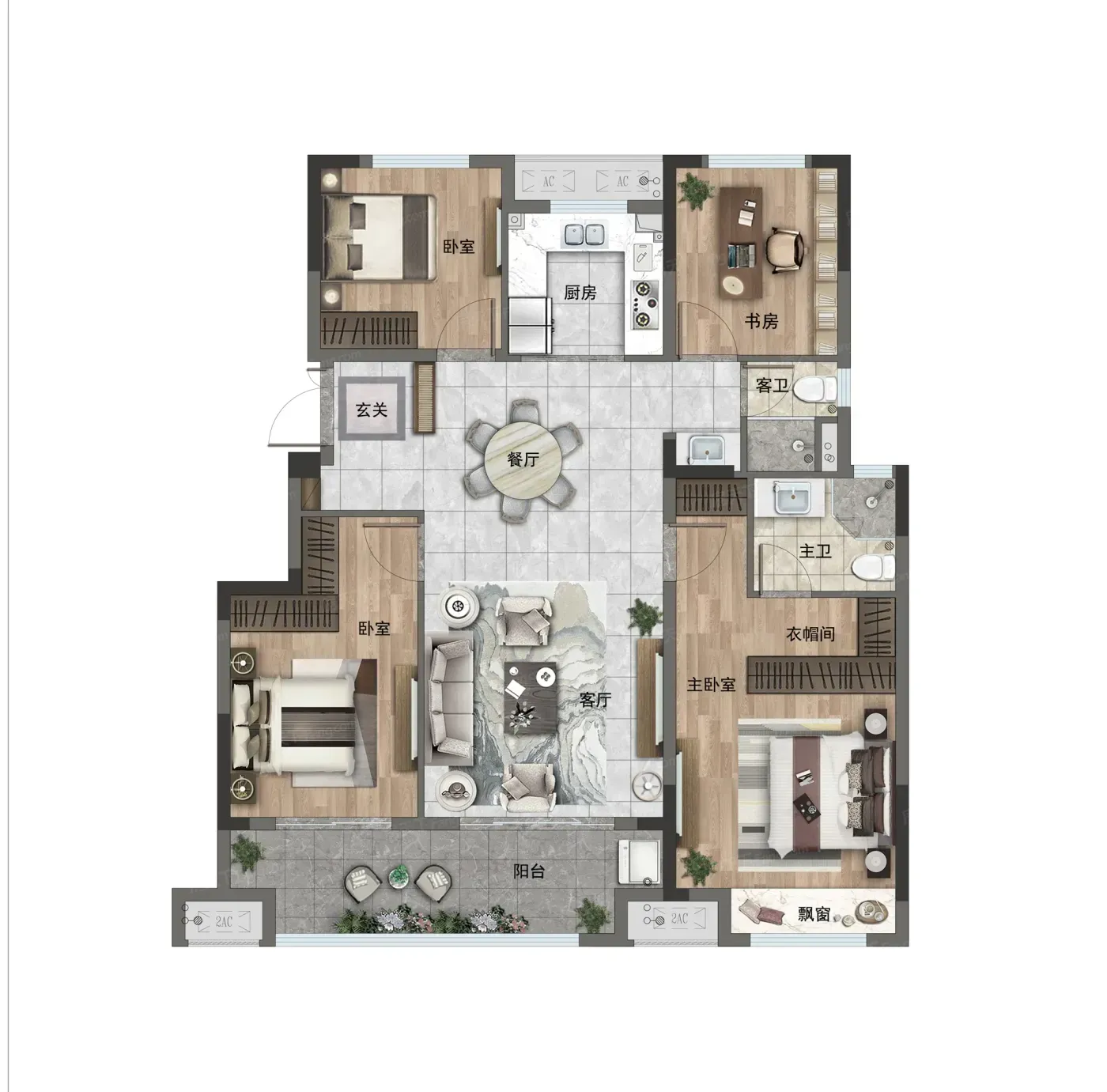 小区环境特别棒,绿化做得很好,物业也很负责。四室两厅的格局超级适合二胎家庭或者三代同住,每个房间都方方正正的,空间利用率超高!