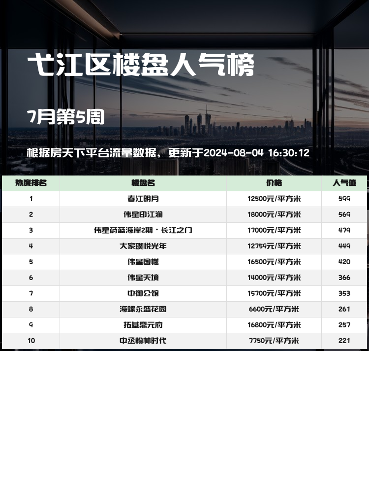 🏠购房者们注意啦!挑选一个合适的楼盘可谓是买房过程中至关重要的一步。随着市场的变化,买房选房的核心逻辑也在不断调整。今天为大家整理了弋江区的人气楼盘榜单,帮助大家了解当前市场上最受欢迎的楼盘。无论是交通配套、教育资源还是楼盘价格,这份榜单都为大家提供了丰富的参考信息。