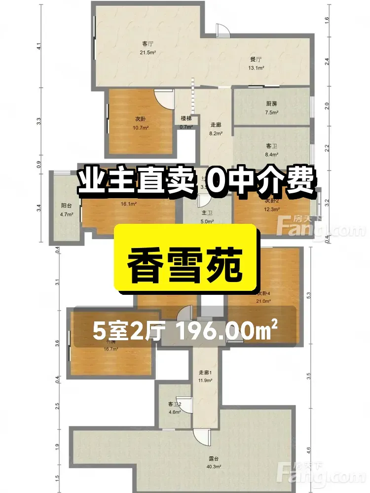 标题:自家香雪苑196平大五房急售!南北通透黄金楼层🏡