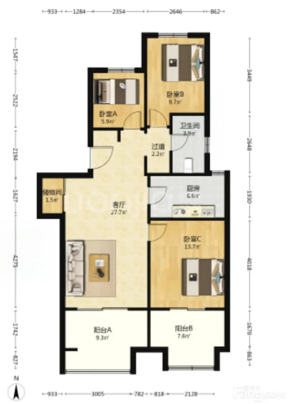 🏠**户型超实用**:83㎡做成了三室两厅!南北通透+双阳台🌞,主卧能摆下1.8米大床还带衣柜,小房间改书房or儿童房都行~