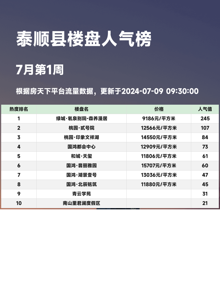 🏡 购房者们注意啦!想在泰顺县找到理想的居所?人气楼盘榜单绝对是你不可错过的参考资料!在当前竞争激烈的房产市场,了解人气楼盘榜单可以帮你快速找到高性价比、优质配套的楼盘。不管是首次购房者还是改善型购房者,都能从这些信息中找到有价值的参考。