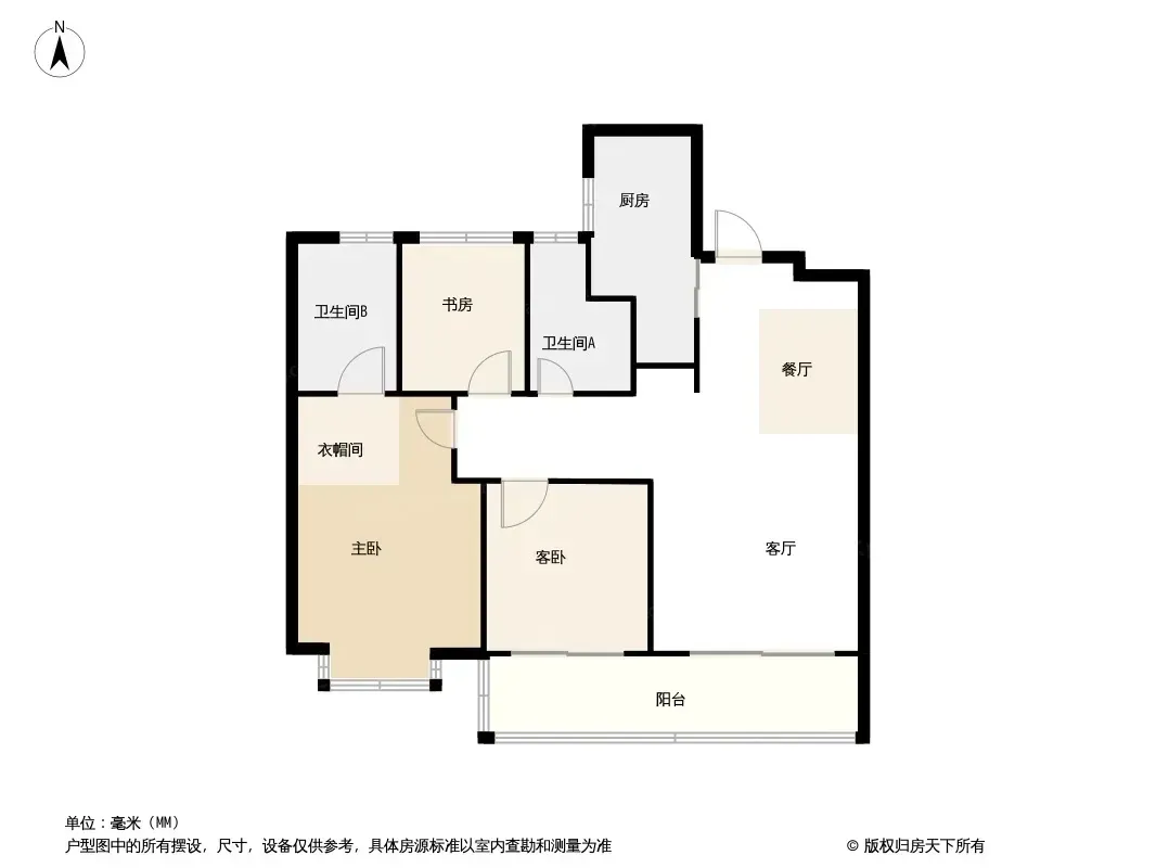 • 99㎡做成三室两厅,主卧能放下1.8m大床+衣柜还绰绰有余