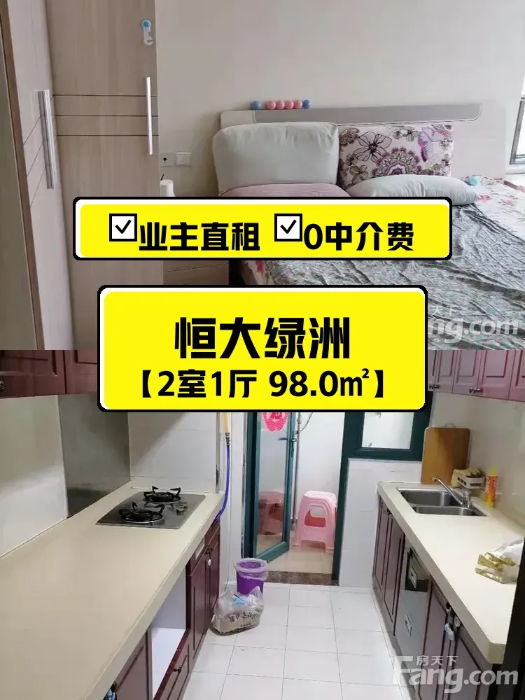 标题:自家恒大绿洲98㎡南向两居出租啦✨