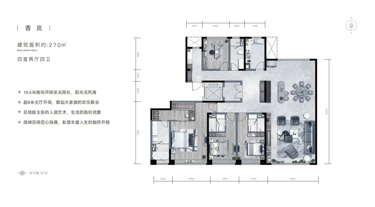 打造“一轴一环六节点”的绿色健康社区,以“360°鲜氧环绕的健康社区”、“超长社区绿廊”、“酒店式院落归家仪式体验”和“小尺度人居打造双重会客厅”这5项独特的设计,打造健康生态的居住体验。