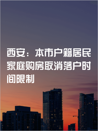 其中提到,在住房限购区域内,西安市户籍居民家庭购买首套、第2套住房取消落户时间限制;非本市户籍居民家庭须持有本市有效期内居住证,且在购房之日前6个月在本市连续缴纳社保或个人所得税,可购买首套住房。夫妻离异后,任一方在限购区域购买住房的,不再核查离异前家庭住房总套数。