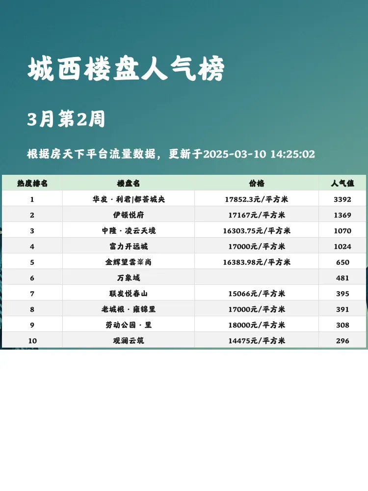 这份榜单帮你快速锁定城西热门楼盘,买房路上不迷茫!💡