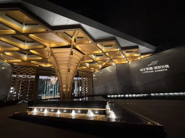 ⚠️此设计是以西安古观音禅寺的千年银杏树为原型,在向下探寻古都文化根基的同时,用建筑和自然结合的方式,将“生命之树”打造成城市生态和谐共生的绿色建筑;⚠️同时仿木金属材质及借鉴西安鼓楼斗拱元素,传递长安在地的文脉,香槟金的顶面搭配菱形倒角线条,呈现出现代时尚又极简化的美学表达,富有强烈的归家仪式感和豪宅尊崇感,也承载着城市的精神符号和城市文化追求❗️