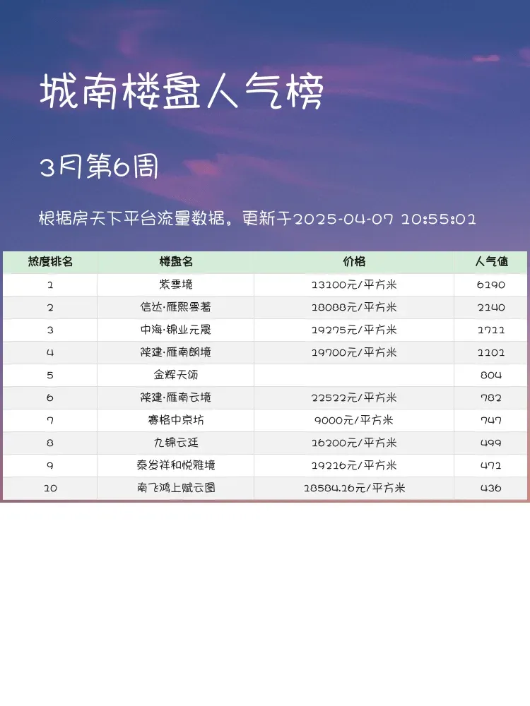 买房选对区域就成功了一半!城南作为西安发展最快的板块之一,配套成熟度与升值潜力兼具💯这份榜单根据近期成交热度、看房量等真实数据整理,帮你快速锁定优质楼盘~