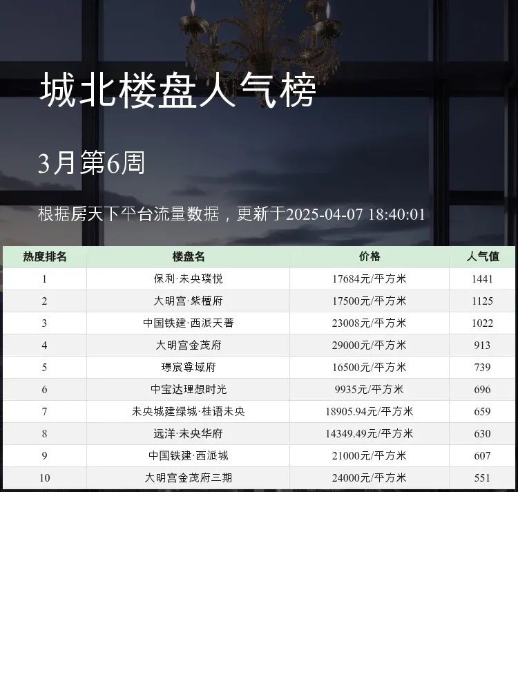 买房选房看榜单准没错!🏆人气楼盘榜单能直观反映市场热度,帮我们快速锁定优质项目✨当前市场下,交通便利+教育资源+户型实用才是王道,这份城北TOP3榜单给你最实用的参考~
