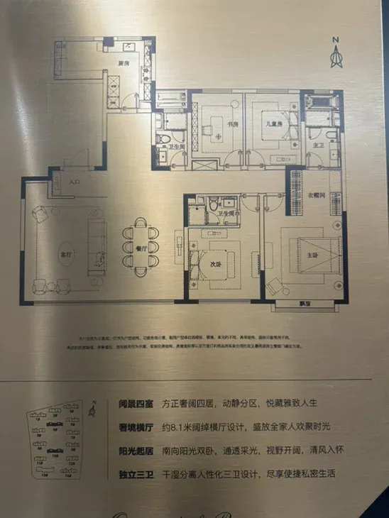 195户型图展示:8.1的横厅设计,动静分区的布局