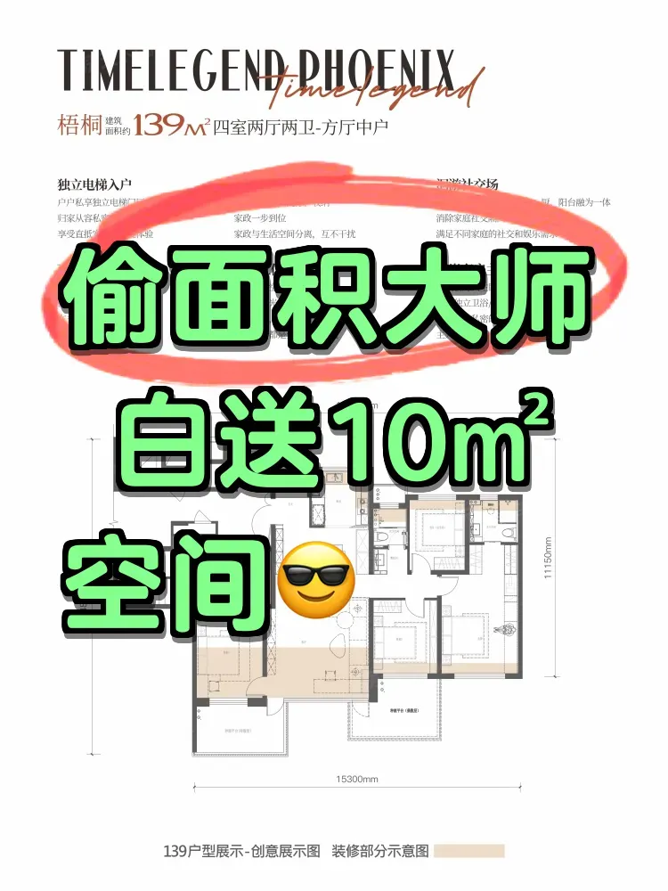 看房三个月悟出的真理:会偷面积的开发商比会说话的销售更稀缺!招商梧桐书院这个139㎡,飘窗延展做成了观景茶座,设备平台改成储物间,连空调机位都设计成可改造空间。重点提醒:实测得房率81%,比周边同面积户型多出个洗手间大小。那些还在算单价的朋友,建议直接带着卷尺去看房,你会回来点赞的。