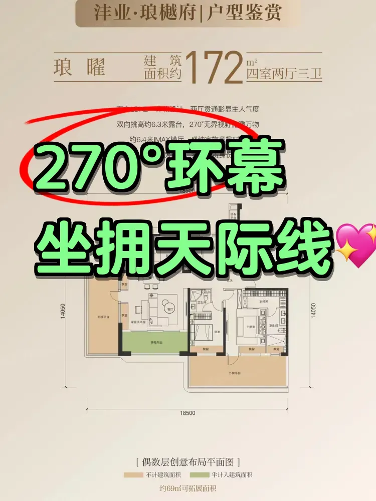 最近房产圈都在传这个神户型:172㎡客厅面宽做到7.2米!亲自探盘发现更绝的是,沣业·琅樾府所有南向户型都自带270°转角阳台。站在25层样板间,能同时看到铁一中操场、沣河生态带和能源中心三处景观。