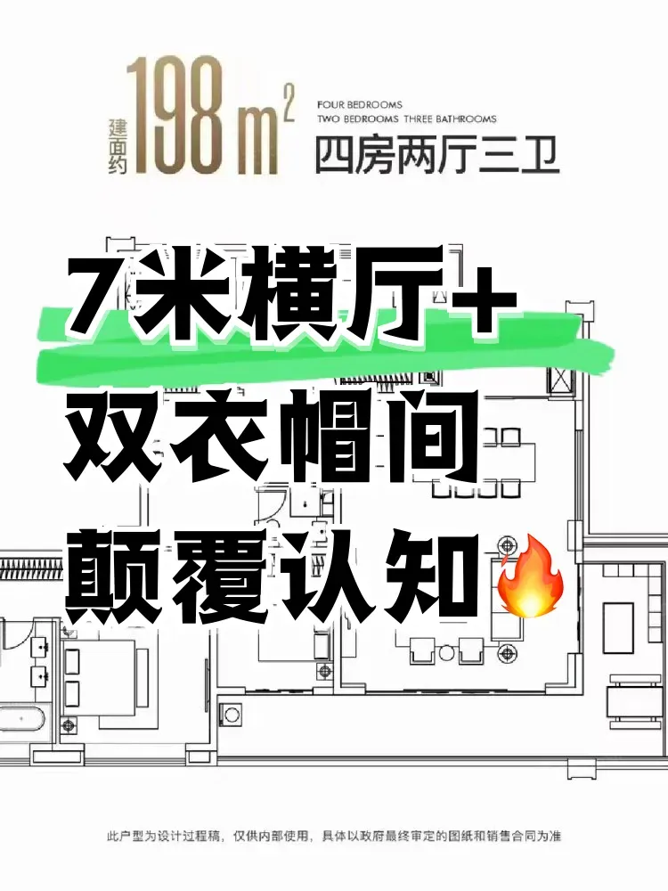陪闺蜜看房偶遇的宝藏项目!198㎡户型直接把客厅做成7米横厅,落地窗把整个港务区的天际线都框成背景墙。主卧居然配置了双衣帽间,男女主人的衣服终于不用混着放,这个细节太懂现代家庭了。