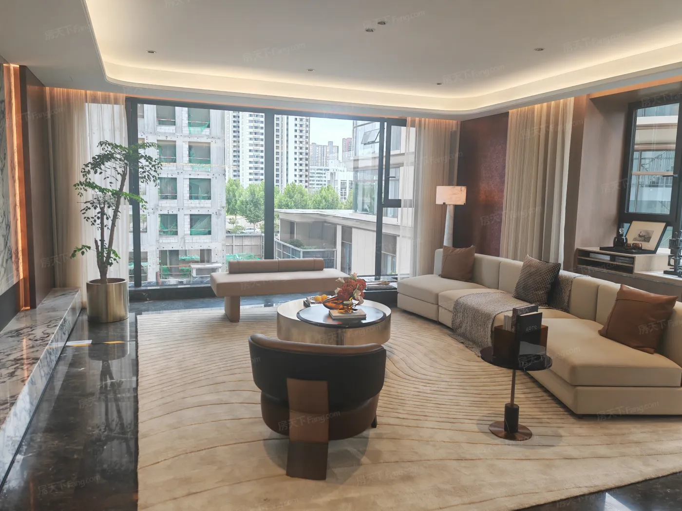 更震撼的是178㎡样板间,客厅开间居然有7.2米!飘窗改造成环绕式卡座,窗外正对流水景墙。主卫的双台盆设计深得我心,关键镜柜自带美妆冰箱,这细节控简直犯规。