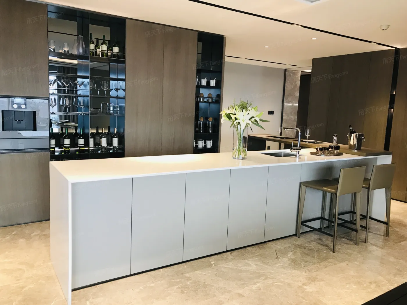 更惊艳的是空间魔法:利用4.8米层高做出的悬浮吊顶,藏着环绕音响和智能新风。主卫的双台盆竟能左右独立控温,淋浴区地漏做成隐藏式长条设计。这才明白高端改善的真谛——把100分需求做到120分解决方案。