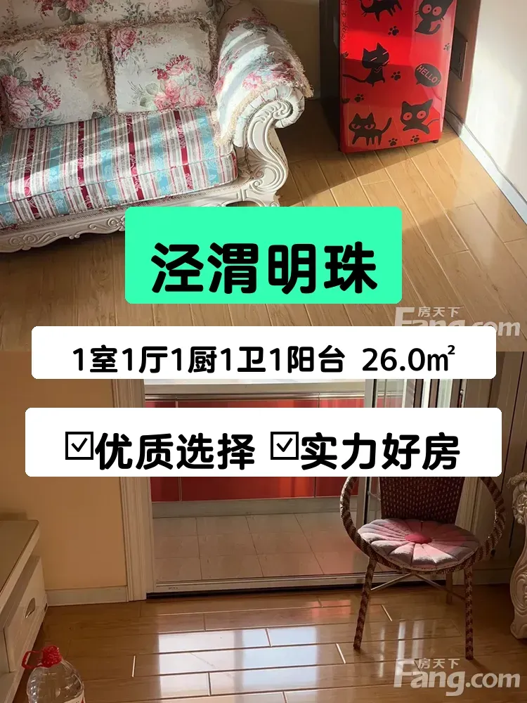 房子在泾渭明珠小区,长庆西路96号,3楼(总高12层),西南朝向采光超棒!虽然只有26㎡,但1室1厅1厨1卫+小阳台的格局特别实用,精装修直接拎包入住~空调、冰箱、洗衣机这些家电全配齐了,连微波炉和电磁炉都备好了,厨房小白也能秒变大厨!🍳