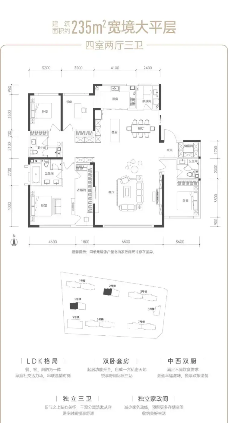 但别急着心动!这个建面175-235㎡的大户型社区,总价门槛要170万起。虽说2.5容积率的低密社区确实舒服,可厨房飘窗预装的咖啡机电位,对普通家庭可能略显奢侈。值得点赞的是动静分区设计:主卧套间和老人房隔着客厅对角线,三代人既能照应又互不打扰。