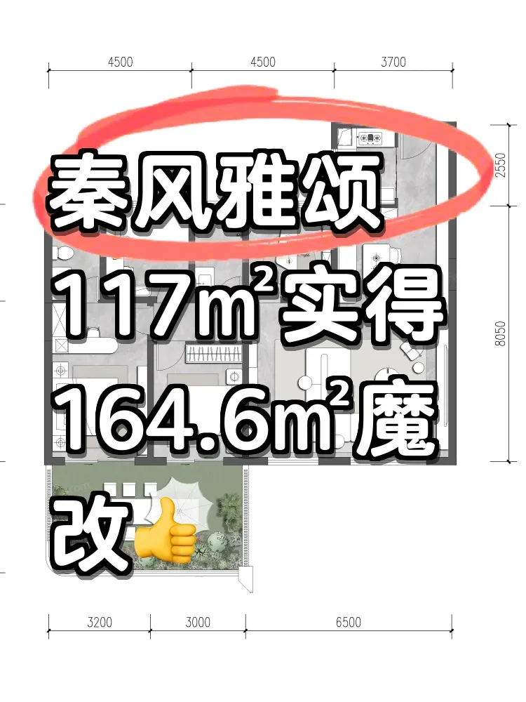 在沣东新城找房,总被「房间不够用」和「公摊太大」卡住?上周遇到个有意思案例——二胎家庭张姐拿着150万预算,硬是在秦风雅颂117㎡户型里规划出三代五居室。这项目最狠的当属建面约117㎡实得164.6㎡的魔改能力,47.1㎡拓展面积直接把得房率顶到121.64%!