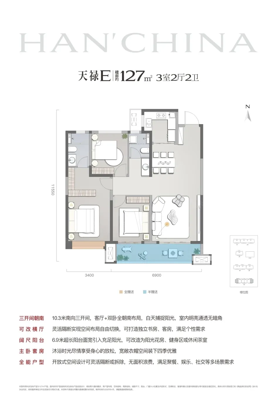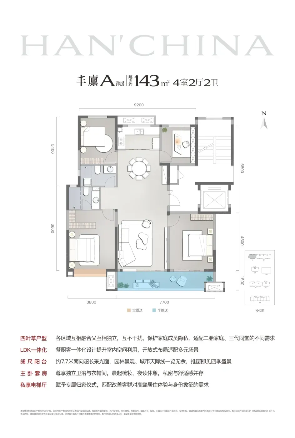 ▫️「动静双厅」真香:建面约143㎡户型的7.7米横厅,实测能同时容纳家庭影院和亲子活动区,但阳台进深稍窄可能影响晾晒动线
