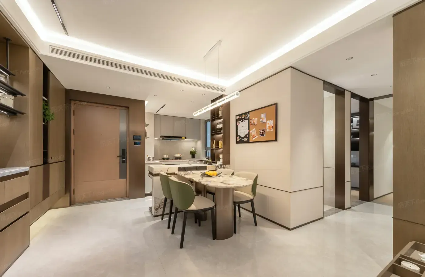 99㎡三室户型堪称空间魔术师,2.8米飘窗秒变咖啡角。但主卫无窗的设计需要适应,建议用新风系统+香薰组合破局。动静分区的玄关柜能藏下三个行李箱,但厨房U型台面比样板间短了20cm。