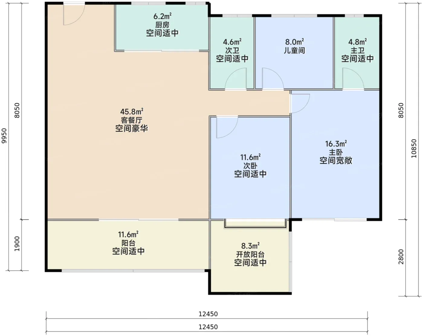 ⚠️北侧次卧进深略局促,定制榻榻米需压缩过道空间