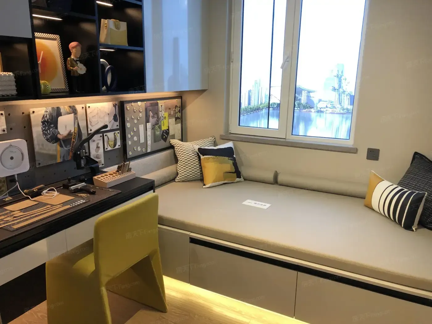 ②飘窗逆袭指南:主卧转角梳妆台延伸至飘窗,早起化妆时阳光刚好爬过窗台。但北向次卧飘窗进深较浅,书架+软垫的网红改造法在这里可能会碰壁