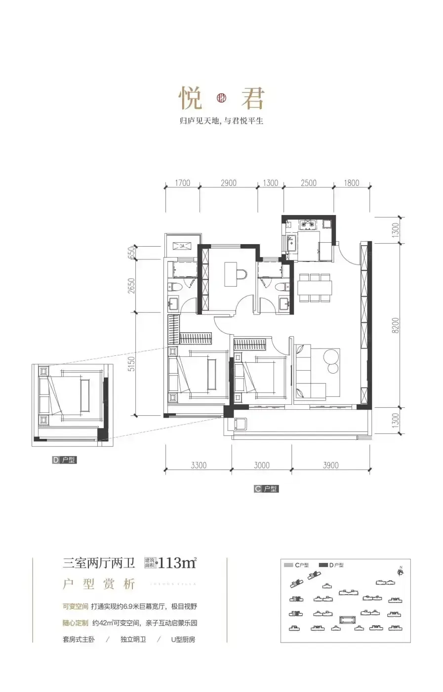 ✅ 户型创新:113㎡做3+1室,主卧270°转角飘窗堪称空间魔术手