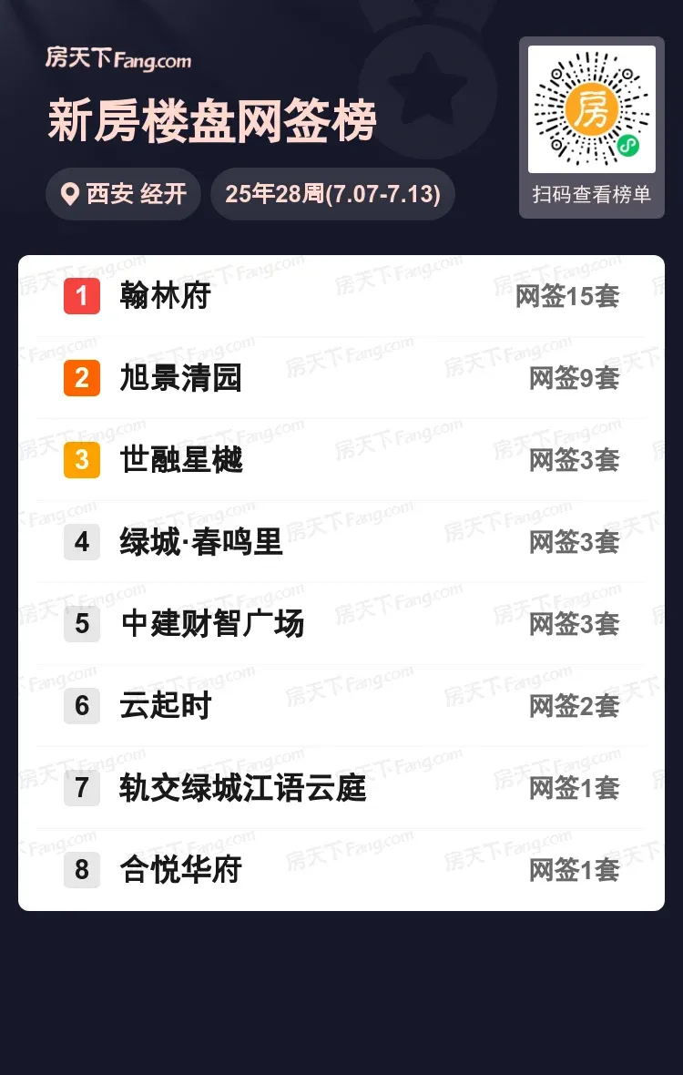 西安经开楼市上周交出亮眼成绩单!翰林府以15套成交量稳居区域榜首,几乎是第二名旭景清园(9套)的两倍。值得关注的是,云起时、轨交绿城江语云庭等品质盘也开始发力,绿城系项目持续保持稳定输出。