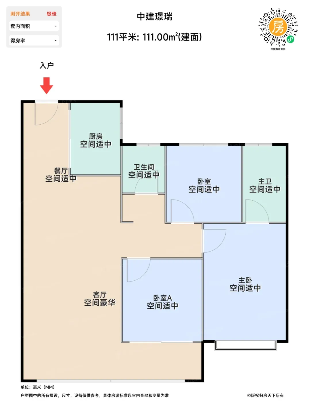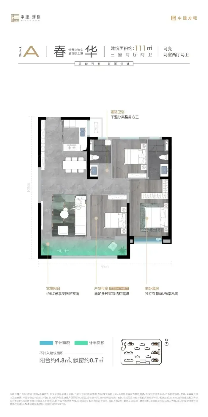 111㎡三房两卫户型堪称神仙设计,南向面宽9.5米完爆同面积段竞品。厨房L型操作台+双开门冰箱位,90后宝妈直呼"装修能省5万预算"。不过要注意北向次卧进深稍短,放1.5米床后过道会紧张。